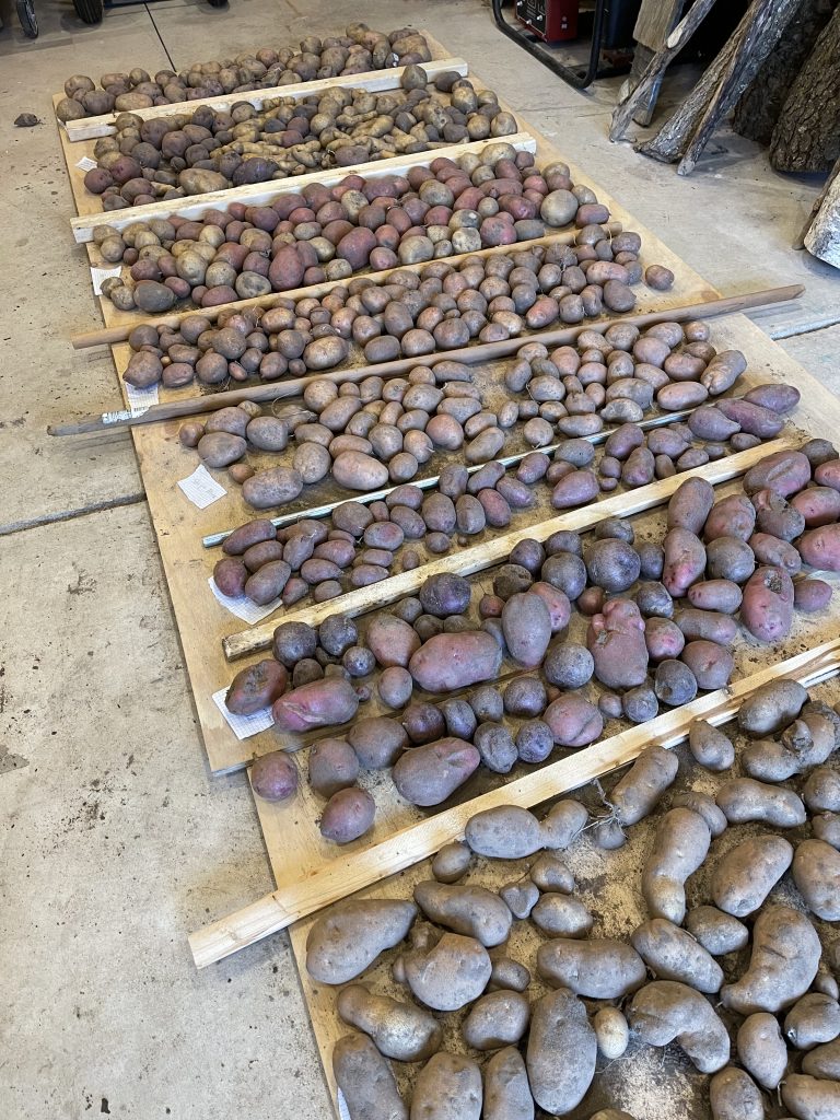 I’ve grown both of these for years, and I can’t really tell a difference between them in either taste or production, so I just continue to grow both. They are common varieties in the upper midwest and are my first choice for baked fries and mashed potatoes. Both have great potato flavor, grow, well, and store well. These will keep the longest and will last until the next year’s potatoes are ready for digging.